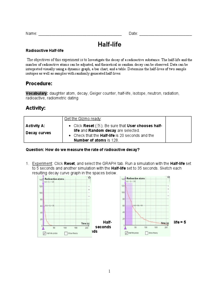 Half life gizmo answer key activity b | half life gizmo.